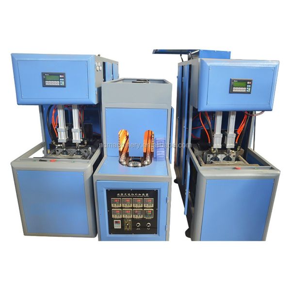 NC series semi automatic bottle blowing machine is the most stable two step blow down equipment of our factory, from one cavity to four cavity, the maximum is 20L,suitable for blowing PET, PP crystal forming kind raw material any shape carbonated beverage bottles, mineral water bottles, cosmetics bottles, wide diameter bottles, high temperature resisting bottles and other plastic container.